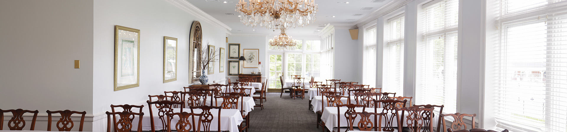 The Great Lawn is perfect for ceremonies, first looks, and receptions, overlooking the beautiful 18-hole golf course and pond. The interior of the mansion features a gorgeous staircase, sunroom, bay windows, and balconies overlooking the lawn. Complete your special day by getting ready and taking photos in our newly-renovated bridal suite with floor length mirror, vanities, lounge furniture, and private restroom.